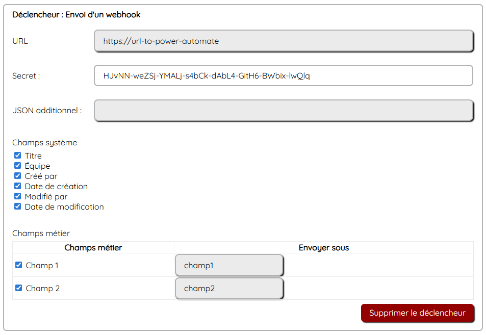 Ici les information seront envoyées à Power Automate, soit pour un traitement interne soit pour être transféré vers un autre système.