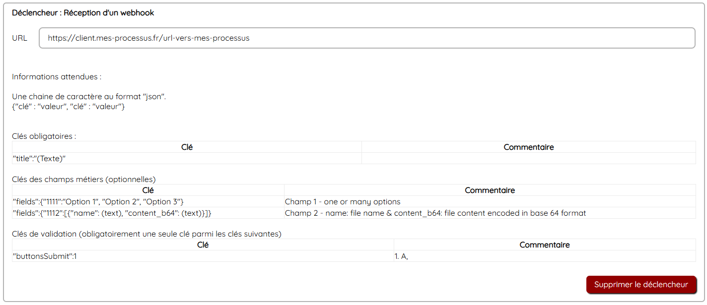 2. Mes processus reçoit le webhook et crée un enregistrement