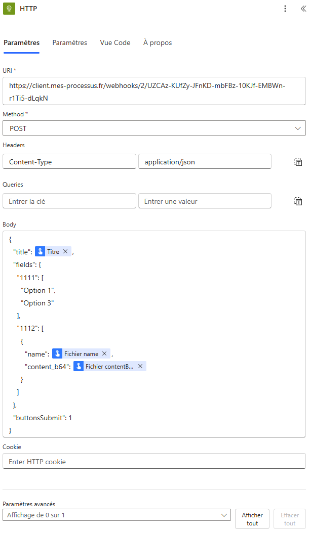 Ici les informations seront envoyées par Power Automate.