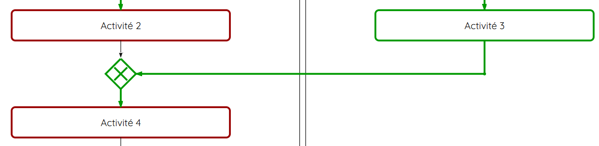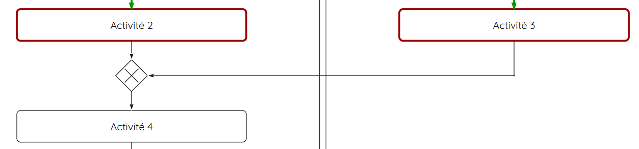 Le XOU convergent est un branchement XOU avec plusieurs flux entrants et un unique flux sortant.